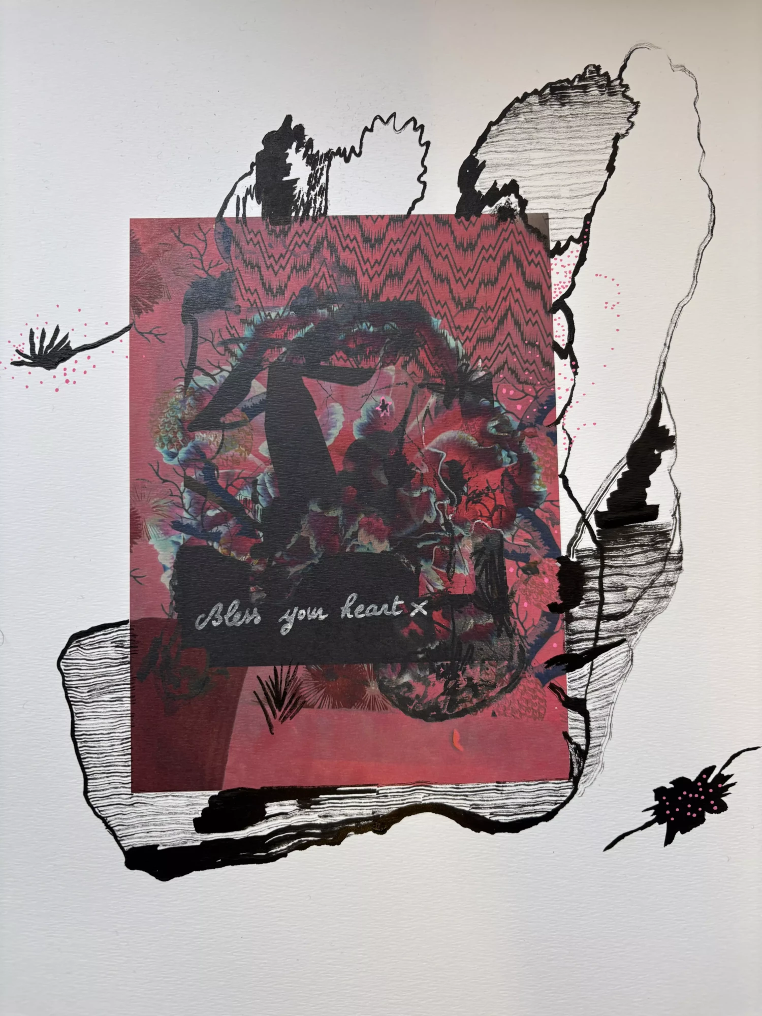 C’est un lieu d’origine, où les images apparaissent avant de devenir des œuvres, où mots, dessins, fragments et gestes se déposent librement.